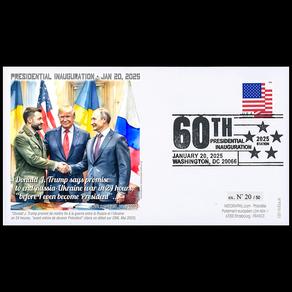 Jumelage philatélique États-Unis (Washington, DC) - France (Strasbourg, Parlement européen 21.01.2025 : Débat sur les conséquences de la Présidence Trump et la Guerre en Ukraine)