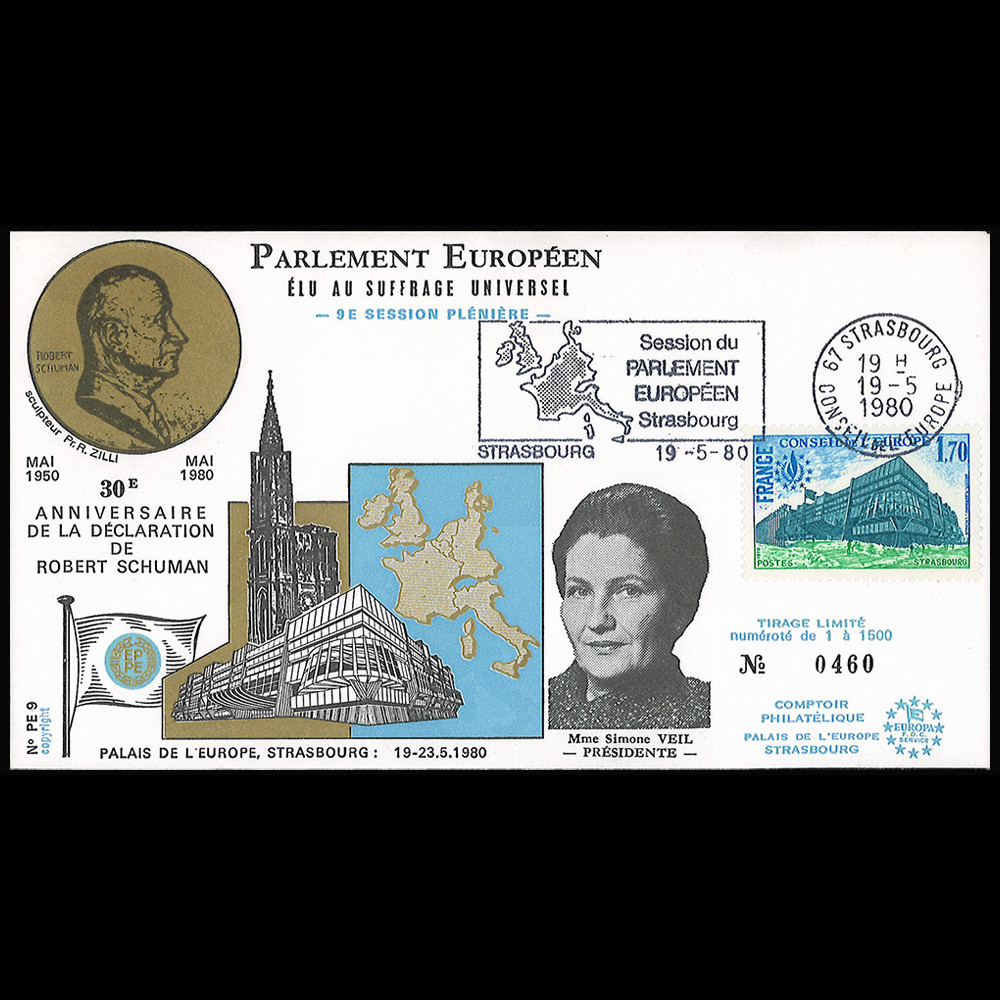 N°PE9 : FDC France, Parlement européen 1985 “30e anniversaire de la Déclaration de Robert Schuman (9 mai 1950/1980) - Simone VEIL, Présidente du Parlement européen"