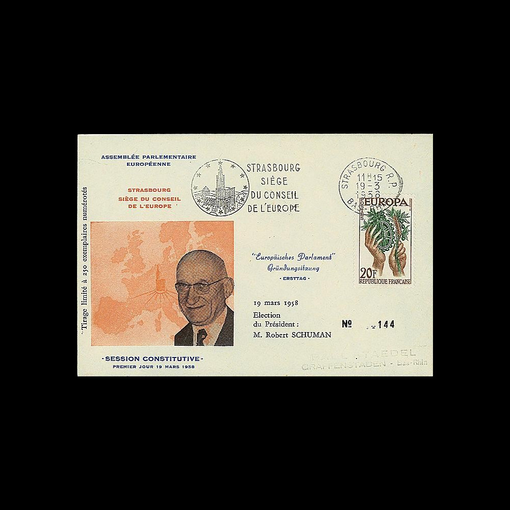 N°OH2a : Enveloppe "Assemblée Parlementaire européenne - Session Constitutive / Europäische Parlament - Gründungsitzung" Election du Président Robert Schuman Affrt 1 valeur 20F "Europa"