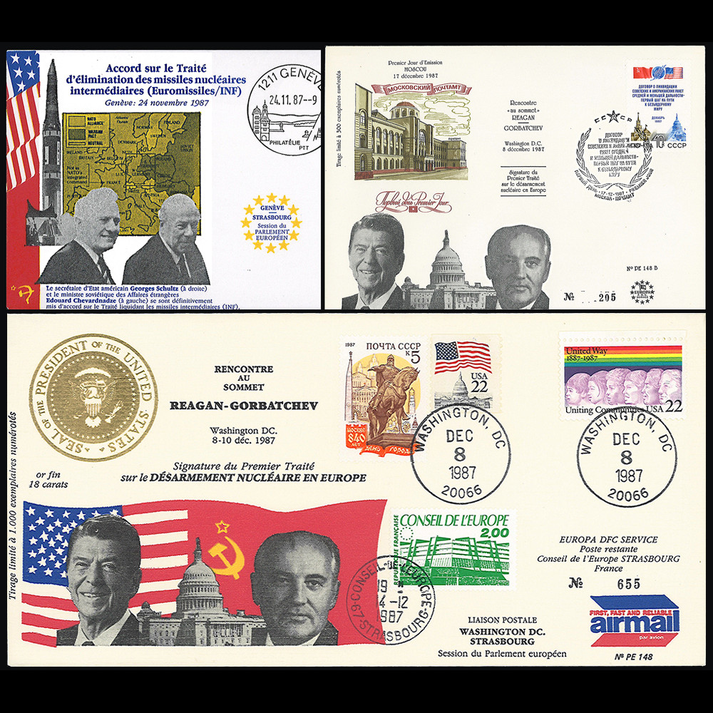 3) FDC URSS “Moscou 17.12.1987 - Reagan - Gorbatchev : Traité Américano-Soviétique sur le désarmement nucléaire en Europe, Déc. 1987 - Premiers pas vers la Paix“
