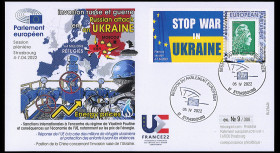 - Postage FRANCE TVP "Marianne Green Letter" fixed on label stamp holder “European Parliament Strasbourg - IN MEMORIAM H.M. THE QUEEN ELIZABETH II 1926-2022"