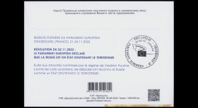 Une enveloppe philatélique, conçue par Historiaphil© (Kiosque de Philatélie du Parlement européen, Strasbourg, France) marque les grands thèmes d'actualité de la session plénière du Parlement européen, du 21 au 24 novembre 2022 à Strasbourg. Elle a été réalisée dans la continuité de la collection des enveloppes philatéliques témoignant depuis 1949, de l'histoire de l'Europe et de ses institutions. Son tirage est limité à 200 exemplaires numérotés.