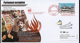 A philatelic envelope, designed by Historiaphil© (Philately Kiosk of the European Parliament, Strasbourg, France) commemorates President Zelenskyy's speech in front of the European Parliament and the stamp issued for the 1st anniversary of Russian's invasion of Ukraine. It was produced as a continuation of the collection of philatelic envelopes bearing witness since 1949 to the history of Europe and its institutions. Its edition is limited to only 50 numbered copies.