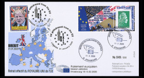 - FRANCE : TVP "Marianne Green Letter" fixed on label stamp holder “European Parliament - Formal sitting - Address by Volodymyr ZELENSKYY, Ukrainian President - Brussels, 9 Feb. 2023" Postmarked Strasbourg (France) "Session of the European Parliament" 9 Feb. 2023 + Brussels (Belgium) "Extraordinary Session of the European Parliament" 9 Feb. 2023