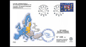 Une série d'enveloppes philatéliques, co-produites par Historiaphil© (Kiosque de Philatélie du Parlement européen, Strasbourg, France) commémore le plus grand élargissement de l'histoire d l'UE. Elle a été réalisée dans la continuité de la collection des enveloppes philatéliques témoignant depuis 1949, de l'histoire de l'Europe et de ses institutions. Son tirage est limité à 120 exemplaires numérotés.