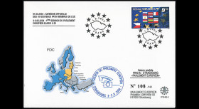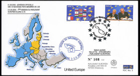 Series 10 FDC “United Europe 1St May 2004 - ENLARGEMENT OF THE EUROPEAN UNION to 25 - Official accession of the 10 new Member States: Czech Republic, Estonia, Cyprus, Latvia, Lithuania, Hungary, Malta, Poland, Slovenia, Slovakia - 1st session of the European Parliament at '25' - Strasbourg (France), 3-5 May 2004"