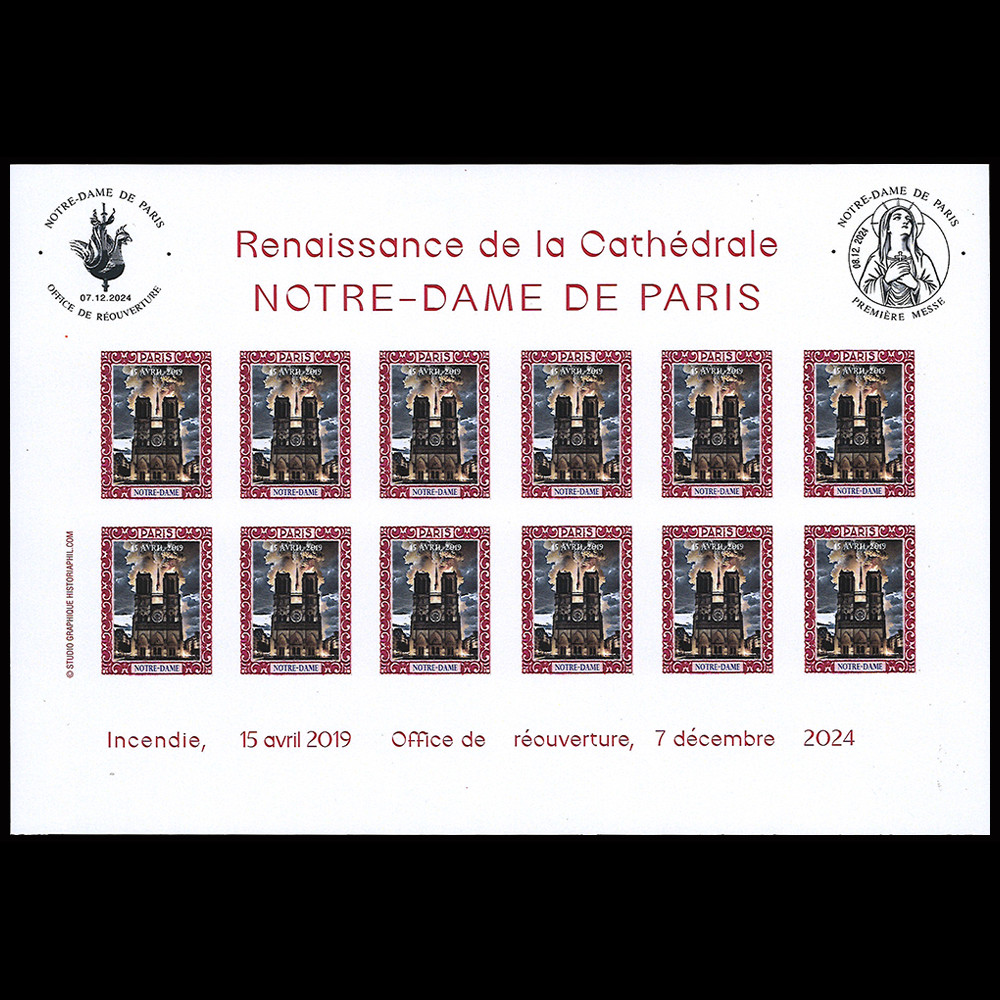 Feuillet 12 vignettes ND (ROUGE) Réouverture NOTRE-DAME DE PARIS 2024 (NDP24-FNDR)