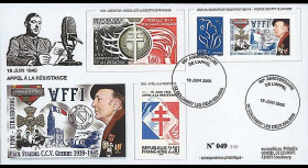 N°DG 03M1 type2: FDC «Jean Moulin - Mouvements Unis de la Résistance» oblit. «M.U.R. Miribel 05.06.03» sur TP «Appel à la Résistance»