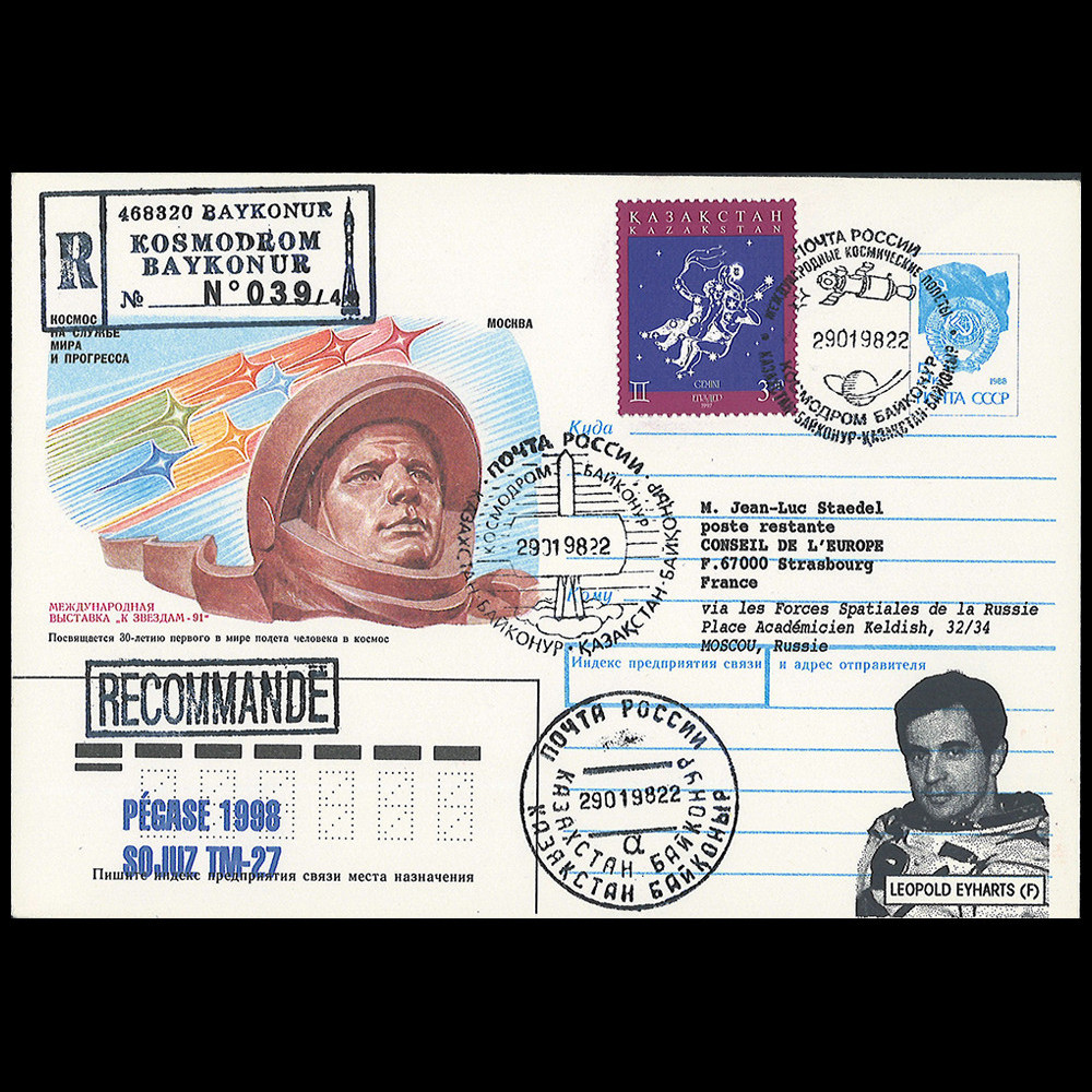 N°PEGASE98-6 : PLI RECOMMANDÉ «LANCEMENT DE SOYOUZ TM-27 / MISSION FRANCO-RUSSE PÉGASE»