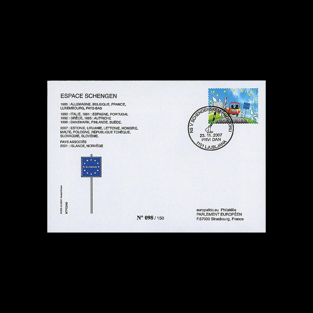 N°PE548: FDC Slovénie 23.11.2007 "Elargissement de l'espace Shengen" : Estonie, Lituanie, Lettonie, Hongrie, Malte, Pologne, République Tchèque, Slovaquie et Slovénie.