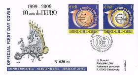N°PE570-BEL : FDC 1er Jour du timbre Belgique '10 ans de l'Euro' émis pour le 10e anniversaire de l'Union Economique et Monétaire