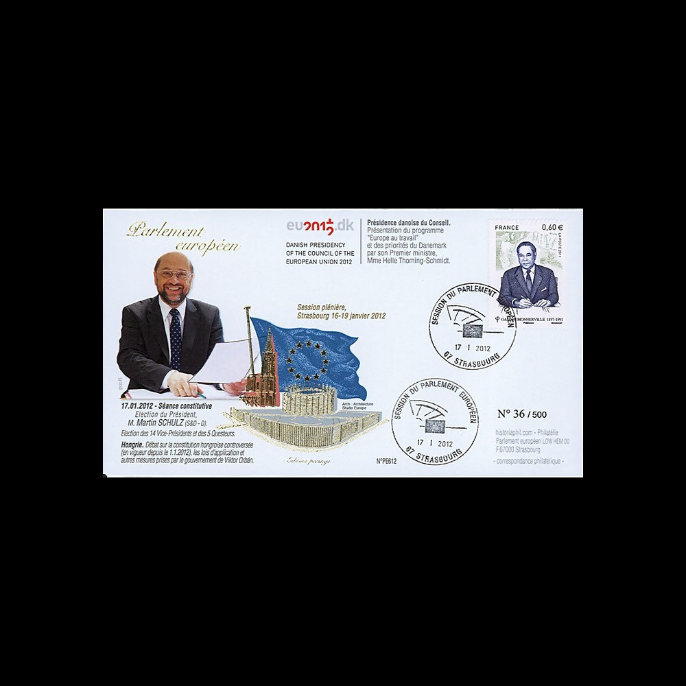 N°PE612 : FDC 'Edition Prestige' Session plénière du Parlement européen de Strasbourg (France) 16-19.1.2012 "17.01.2012 : Election du Président du Parlement Européen M. Martin SCHULZ (S&D - D)" :