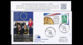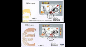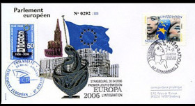 N°PE518-EU: Feuillet non-dentelé de 10 vignettes "50e anniversaire du timbre-poste EUROPA 1956-2006" sur papier gommé. Illustration du timbre-poste original de 1956.