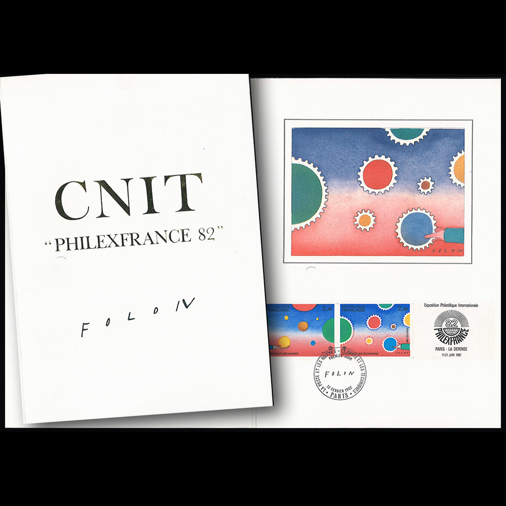 - paire attenant à un logo 2 x 2,00F "Dessins de Folon : La Poste et les Hommes, La Poste et les Techniques" (Yvert 2200A) oblitérée Paris "Folon" 13.02.1982