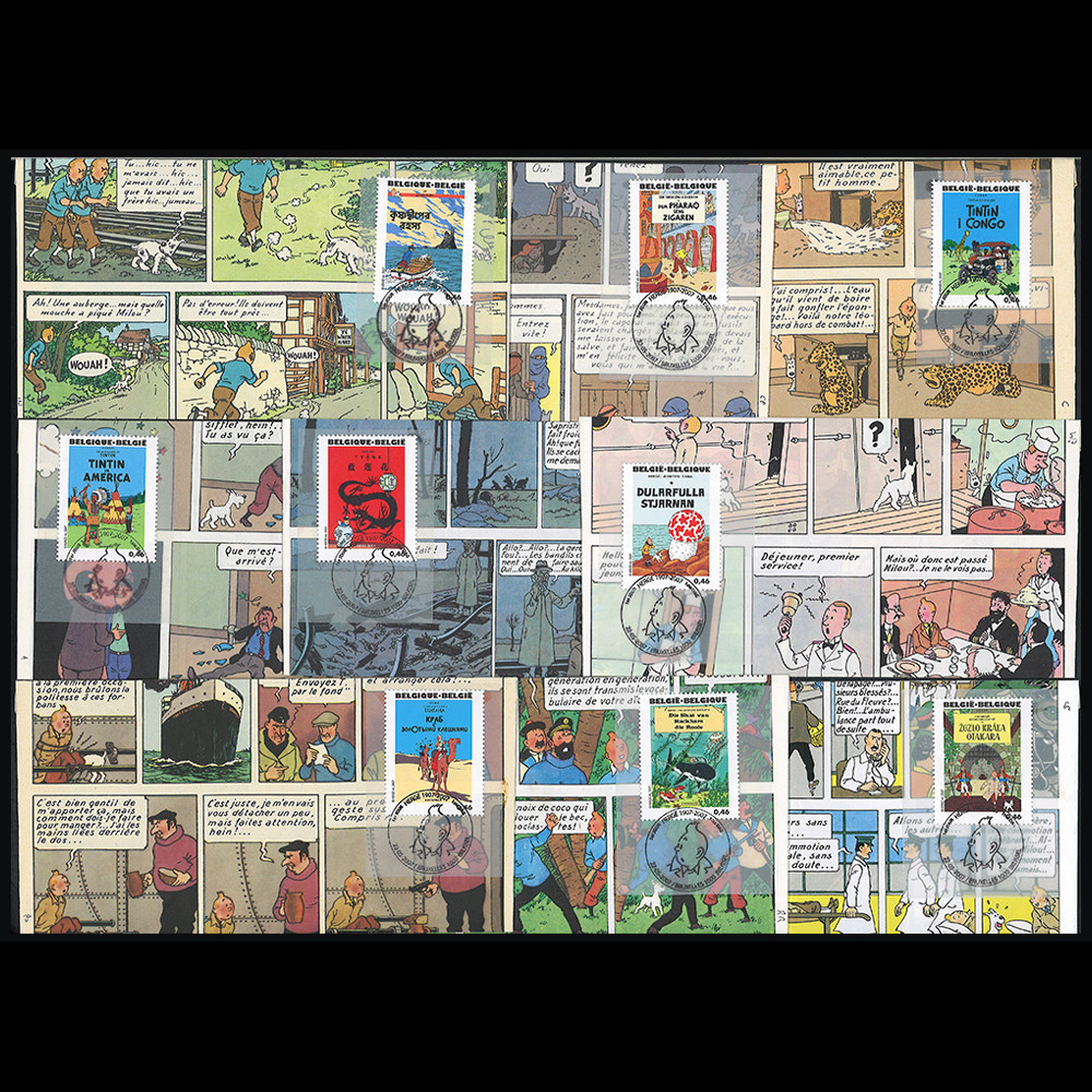 La collection est composée de 20 enveloppes Collectors façonnées artisanalement à partir de pages provenant d'authentiques et anciennes BD des aventures de Tintin + 4 enveloppes FDC illustrées (voir photos)