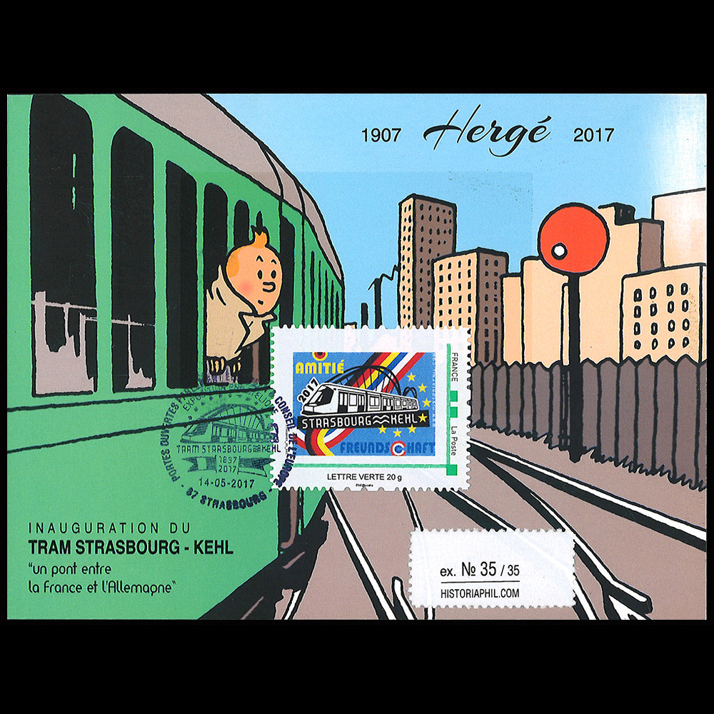 overprinted "Hergé 1907-2017 / Inauguration of the Strasbourg-Kehl Tram - A bridge between France and Germany"
