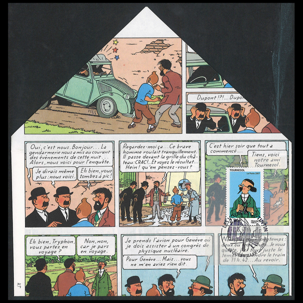 For "Tintinophiles" and passionate collectors, we wanted to create an original "First Day" by handcrafting envelopes from pages cut from authentic albums "The Adventure of Tintin".