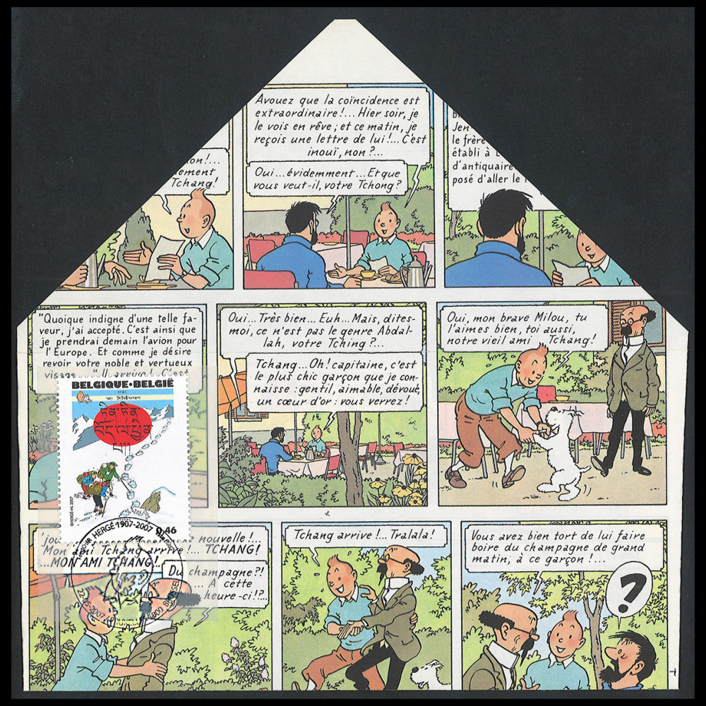 For "Tintinophiles" and passionate collectors, we wanted to create an original "First Day" by handcrafting envelopes from pages cut from authentic albums "The Adventure of Tintin".