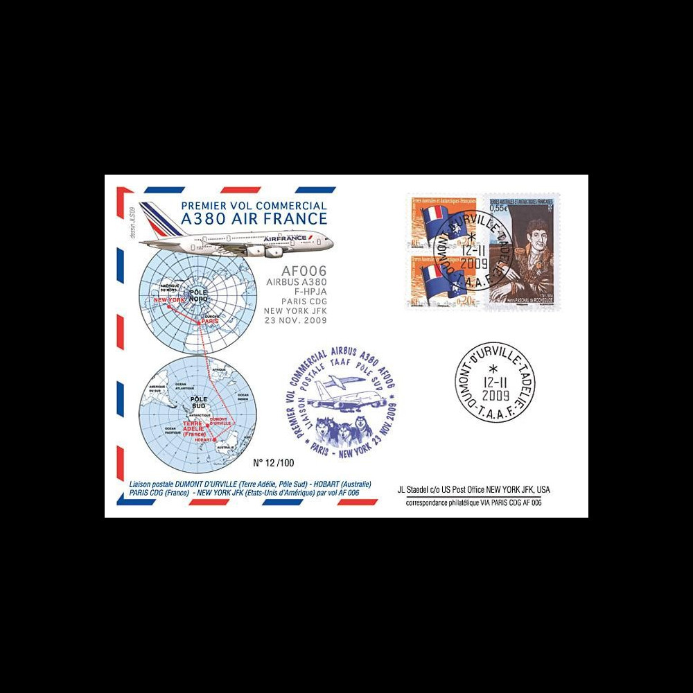 No. A380-90T4 : FDC TAAF traveled A380 F-HPJA '1st Commercial Flight AF006 Paris CDG - New York JFK 23.11.09'
