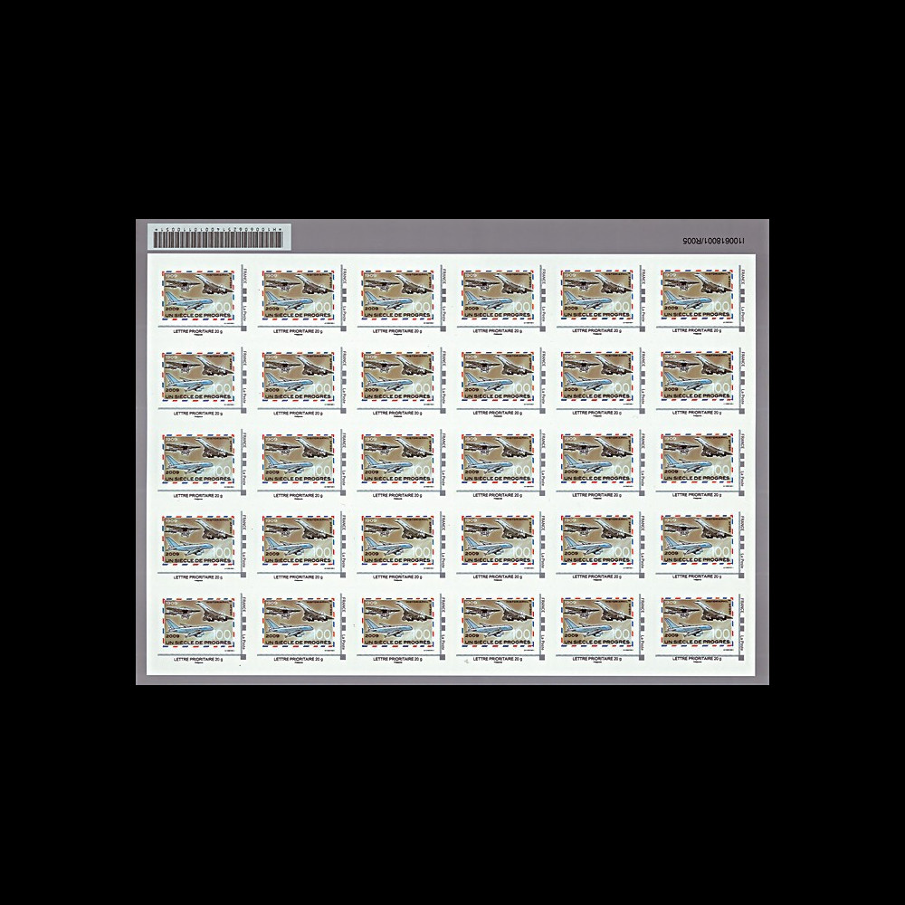 N°A380-97F : Feuillet de 30 tpp France Lettre prioritaire 20g “1909-2009 Un Siècle de Progrès” (avions Blériot, Concorde et A380)