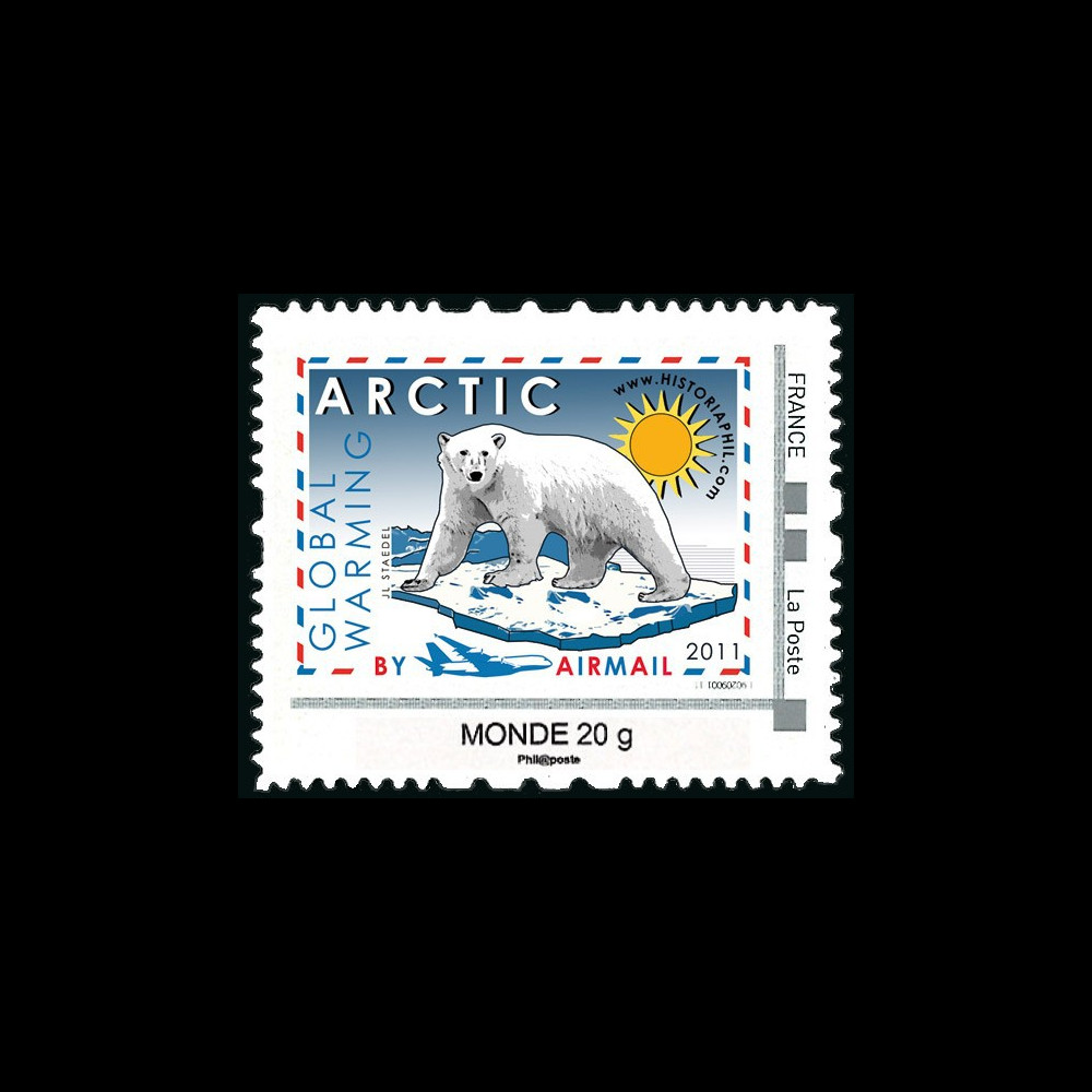 N°A380-131N : 1 value France Personalized stamp World 20g ENGLISH TEXT "ARCTIC Global warming / A380 and Polar Bear"