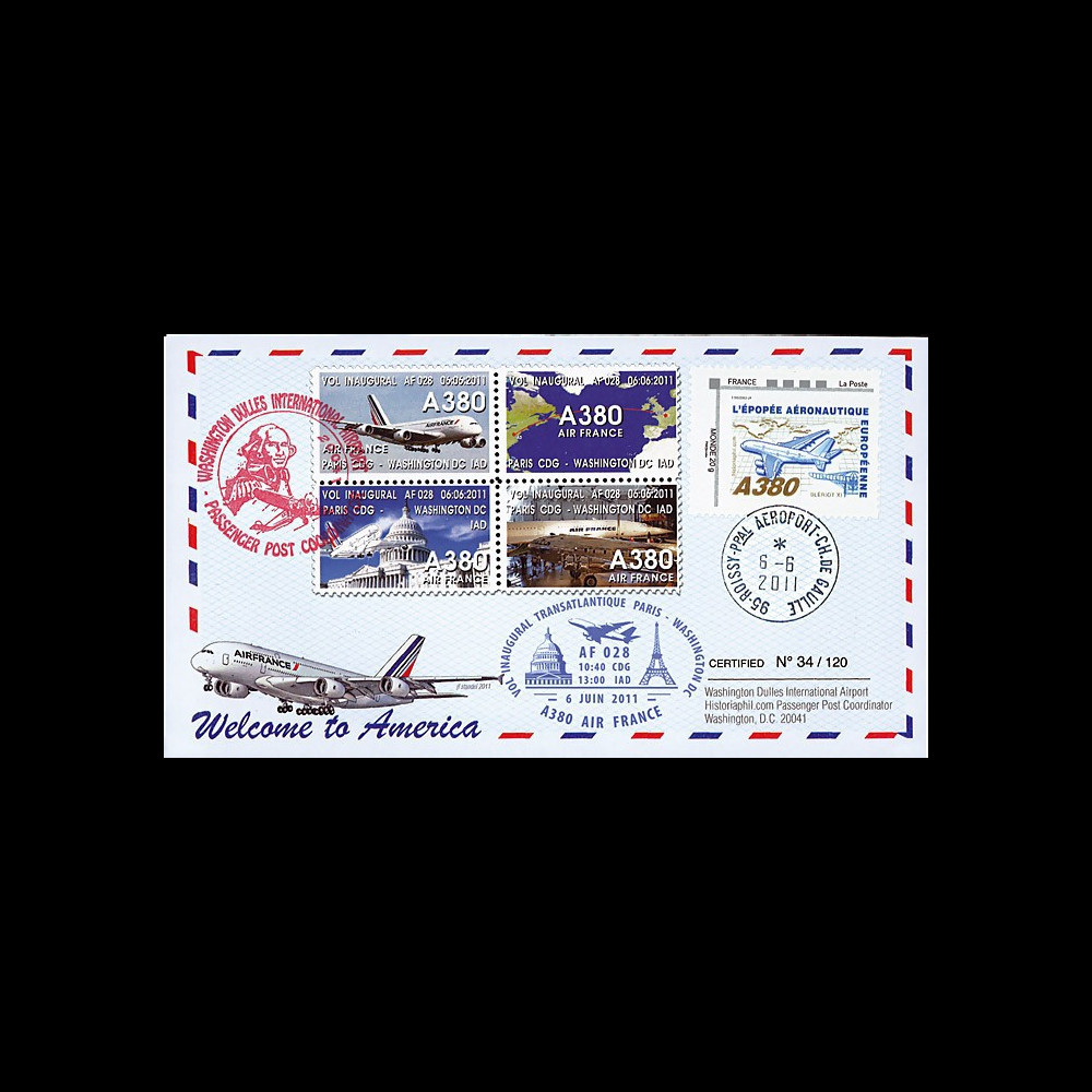 N°A380-133 : First Flight Cover (FFC) FRANCE “June 6, 2011 : Maiden Flight Airbus A380 Air France AF028 Paris CDG (France) - Washington IAD (USA)” :