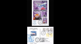+ Block of 4 labels "Maiden Flight Paris-Washington Airbus A380 Air France - Concorde"