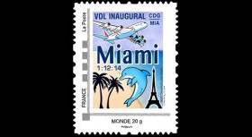 Franked France 1 value Personalized stamp World letter 20g "Airbus A380 flying to America - Bleriot XI with frame 'FRANCE - La Poste' to the left, 2011" postmarked in Paris "Roissy - Charles de Gaulle Airport" (France) dated June 6, 2011