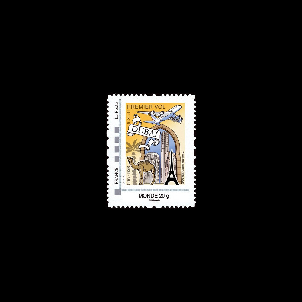 N°A380-172N : FRANCE 1 value Personalized World 20g "December 5, 2011 : First Flight Airbus A380 Air France AF3830 Paris CDG (France) - Dubai DXB (United Arab Emirates) / Eiffel Tower and Camel" 2011 :