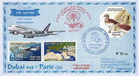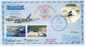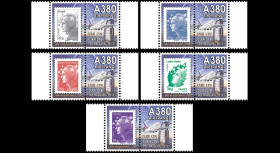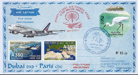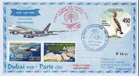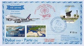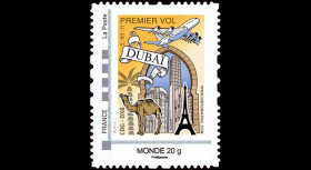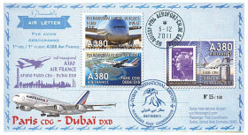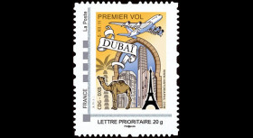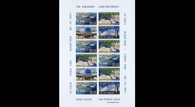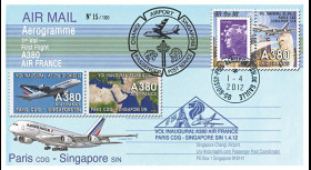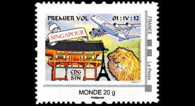 N°A380-175P : FRANCE Complete Sheet of 30 values Personalized Stamps Priority Letter 20g "April 1, 2012 : First Flight Airbus A380 Air France AF256 Paris CDG (France) - Singapore SIN (Republic of Singapore) / Eiffel Tower and Lion" 2012 :