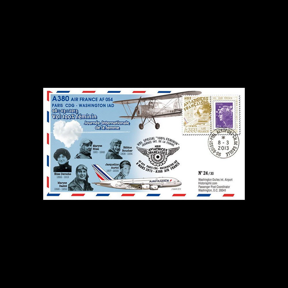 + BLACK cachet “100% feminine Flight A380 AF 054 Paris CDG- Washington“