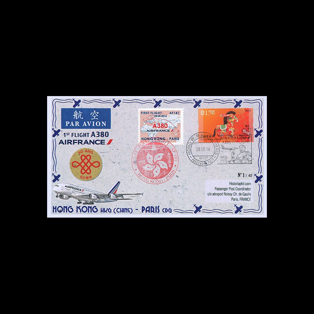 + Red cachet "Airbus A380 Air France - First Flight Hong Kong-Paris" (China) dated May 28, 2014