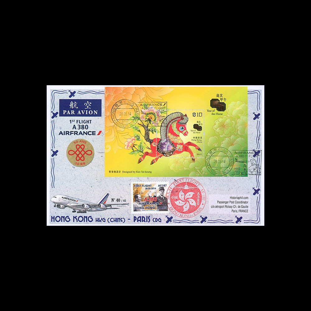 + Red cachet "Airbus A380 Air France - First Flight Hong Kong-Paris" (China) dated May 28, 2014