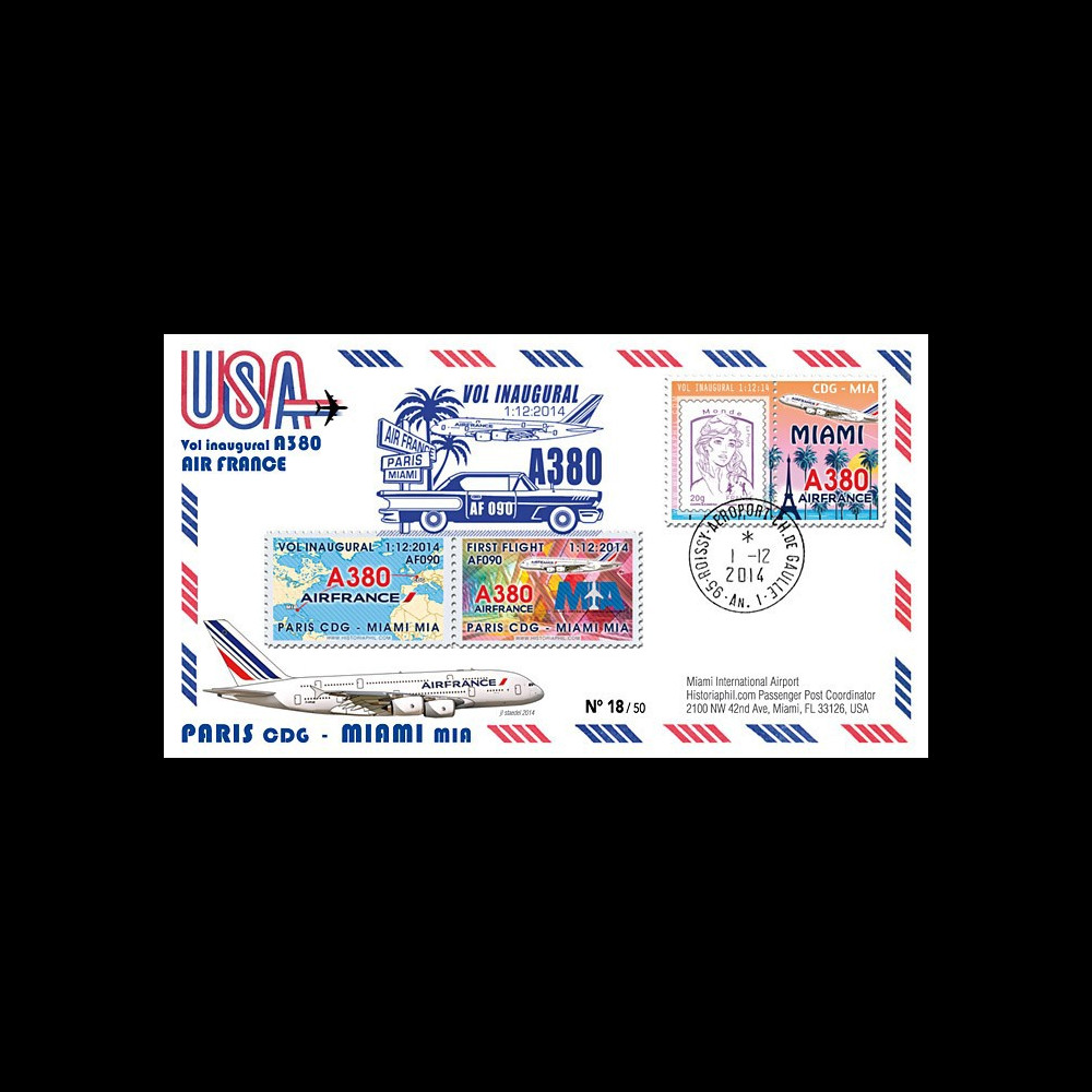 N°A380-289T2 : First Flight Cover (FFC) FRANCE "December 1st, 2014 : First Flight Airbus A380 Air France AF 090 Paris CDG (France) - Miami MIA (USA)"