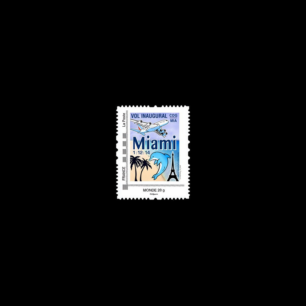 N°A380-288N : FRANCE 1 value Personalized stamp World 20g "December 1st, 2014 : First Flight Airbus A380 Air France AF 090 Paris CDG (France) - Miami MIA (USA)"