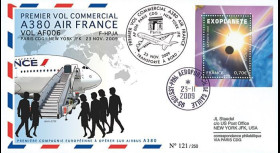 "December 1st, 2014 : First Flight Airbus A380 Air France AF 090 Paris CDG (France) - Miami MIA (USA) / dolphin, Eiffel tower, Palm trees, Airbus A380" (Size 140 x 297 mm ; unfolded)