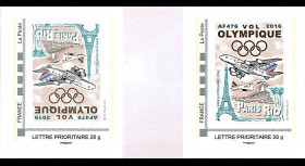 N°A380-299T3VN : FRANCE Set of 2 values Priority letter 20g VARIETY INVERTED PAGES BLUE/PINK background