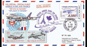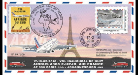 N°A380-299T1 : Maxi-FFC carried on board “August 22-23, 2016 : Olympic Flight A380 Air France AF 426 Paris - Rio and AF 427 Rio - Paris / 40th anniversary of the 1st commercial flight Concorde“ with philatelic postal link France-Brasil