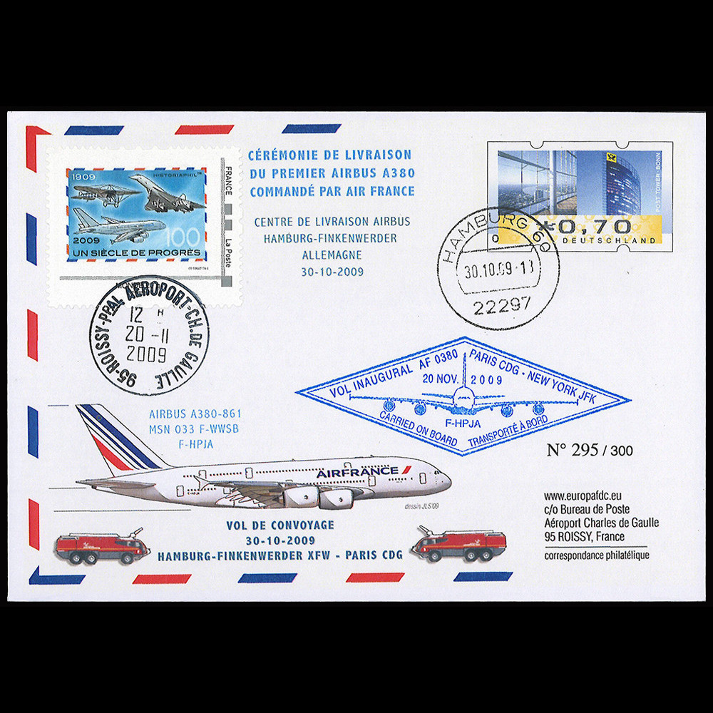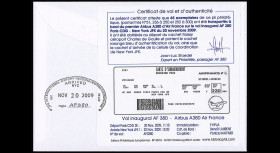- First Flight Covers carried aboard the Airbus A380 F-HPJA, the largest aircraft ever to fly between France and the USA -