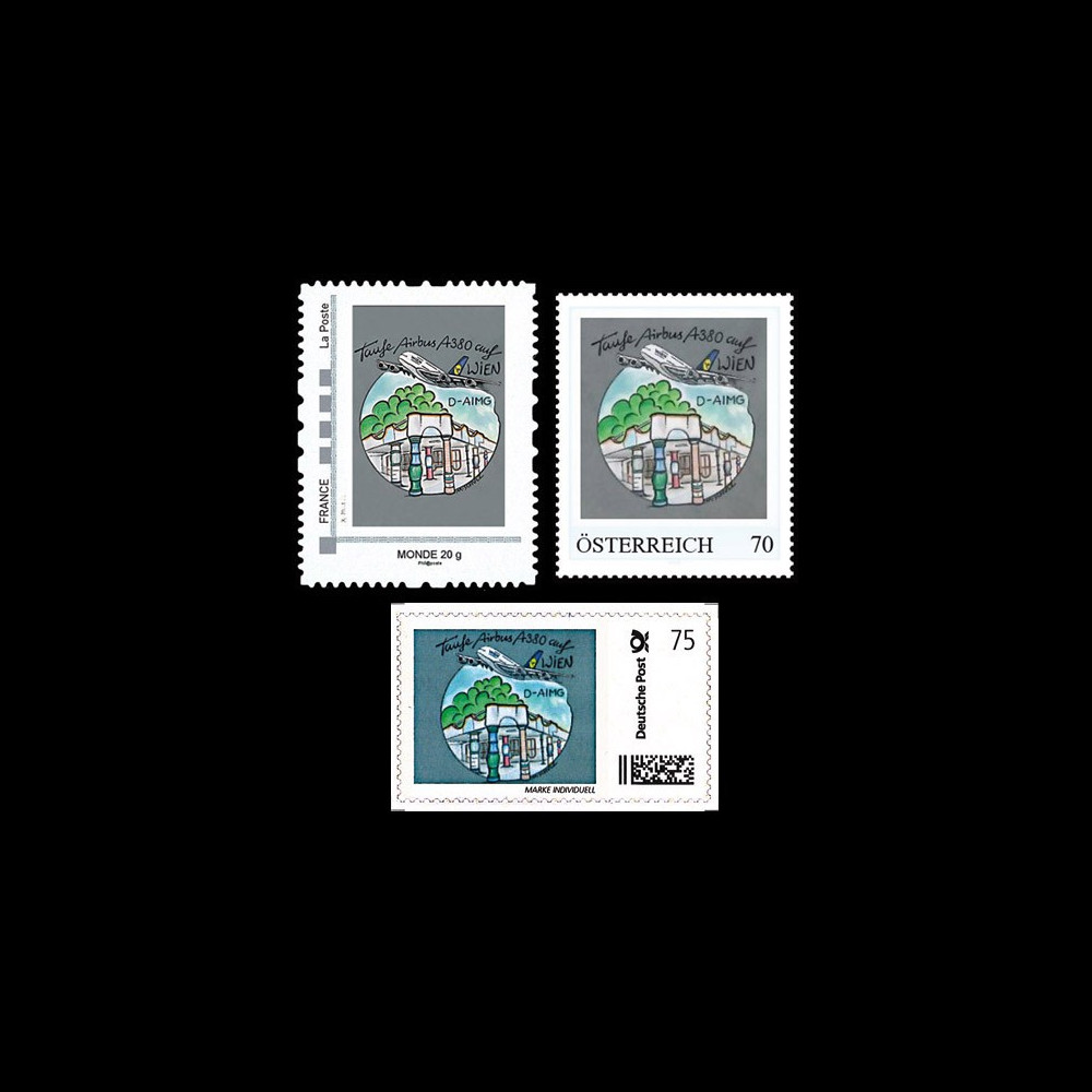 N°A380-141-143N : Set of 3 values Personalized Stamp "Taufe Airbus A380 auf Wien / Naming A380 Wien" 2011 :