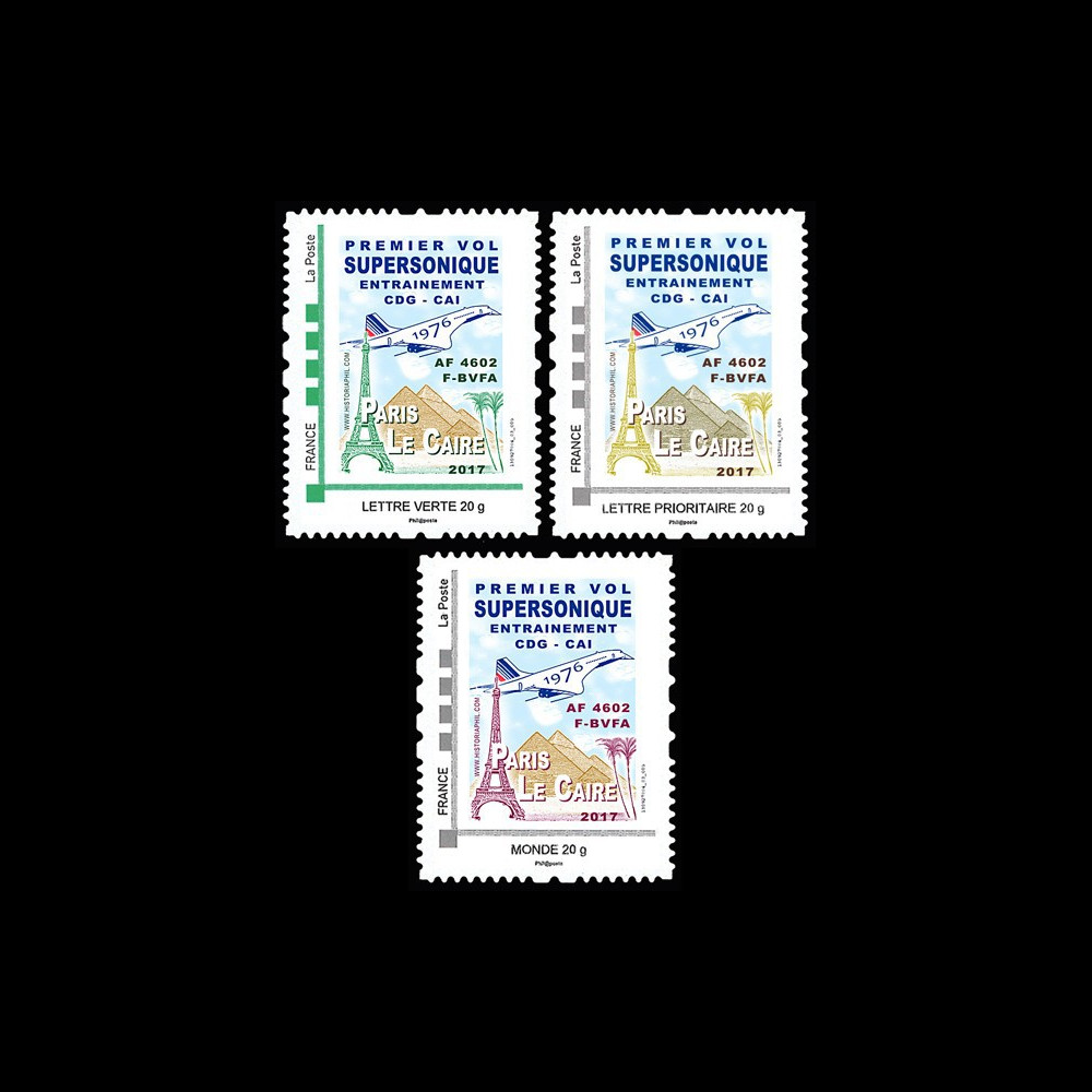 CO-RET75T1/3N : France Personalized stamp IDtimbres© “1976 - 2017 AIR FRANCE CONCORDE / 41th anniversary of first flight Paris CDG - Cairo CAI (Egypt) Training flight AF 4602 F-BVFA“