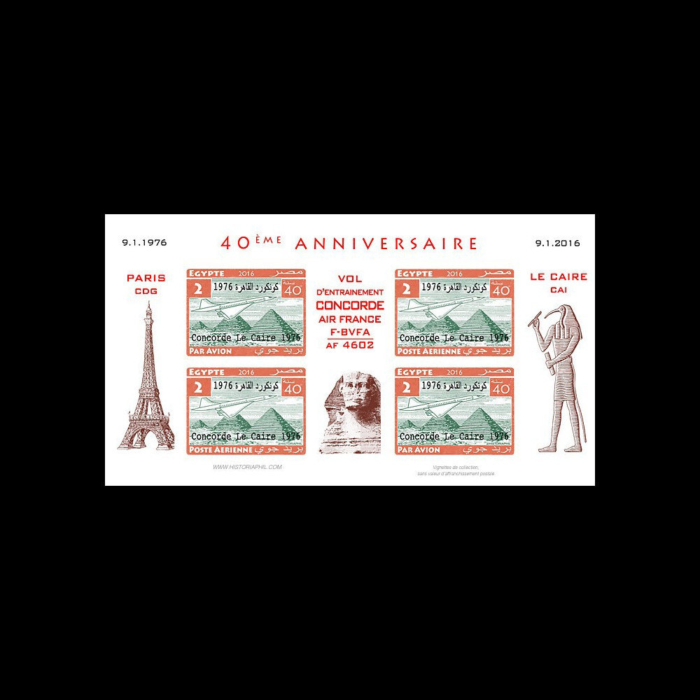 January 9, 1976-2016 : A series of 10 sheetlets was issued for the 40th anniversary of the First Flight of CONCORDE F-BVFA AIR FRANCE Paris - Cairo (Egypt) / Training Flight AF 4602.