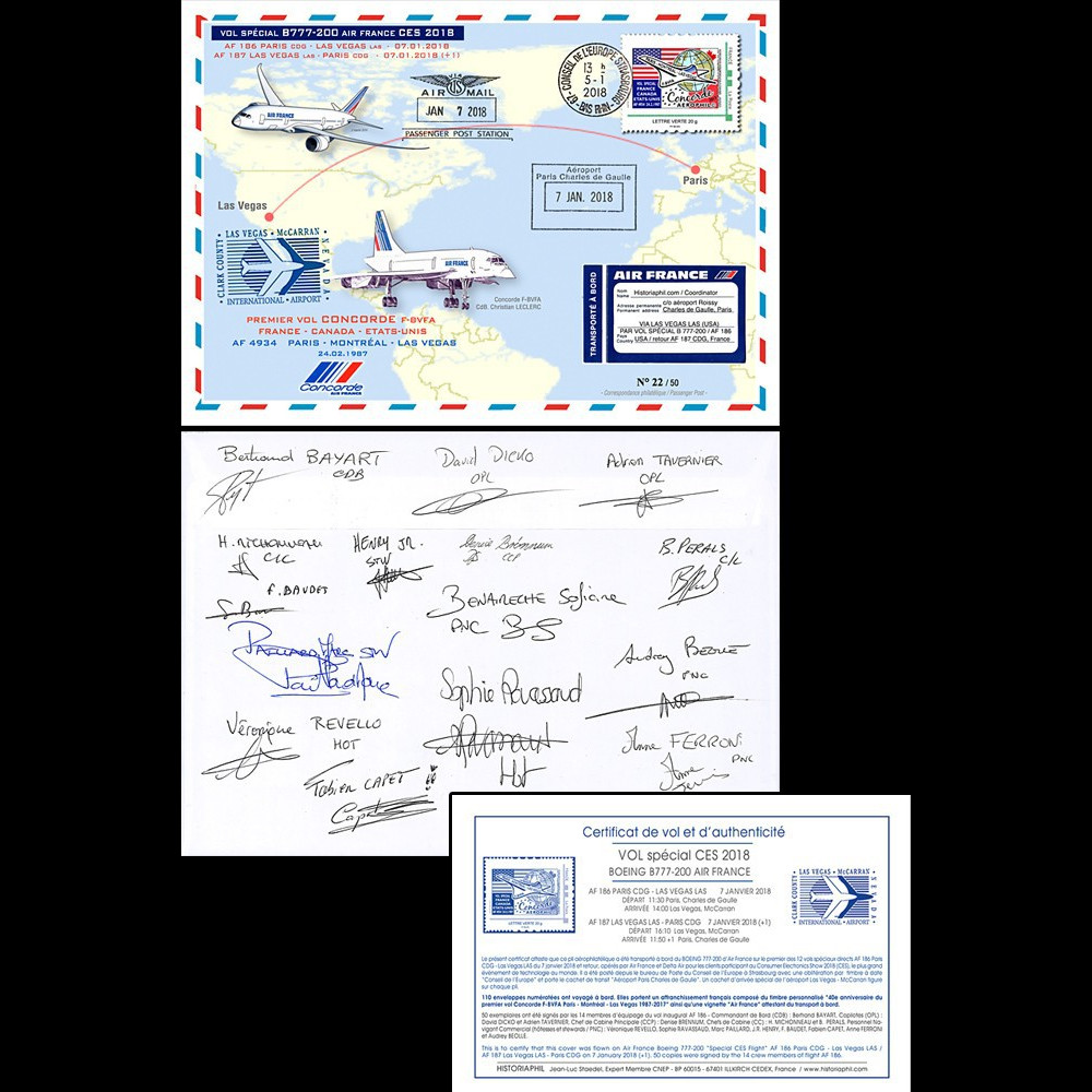 CO-RET80D : FFC carried on board “Double-flight special B777-200 Air France AF 186 Paris - Las Vegas and AF 187 Las Vegas - Paris, 7.01.2018 / 40 years Single special flight Concorde in Las Vegas 1987-2017“