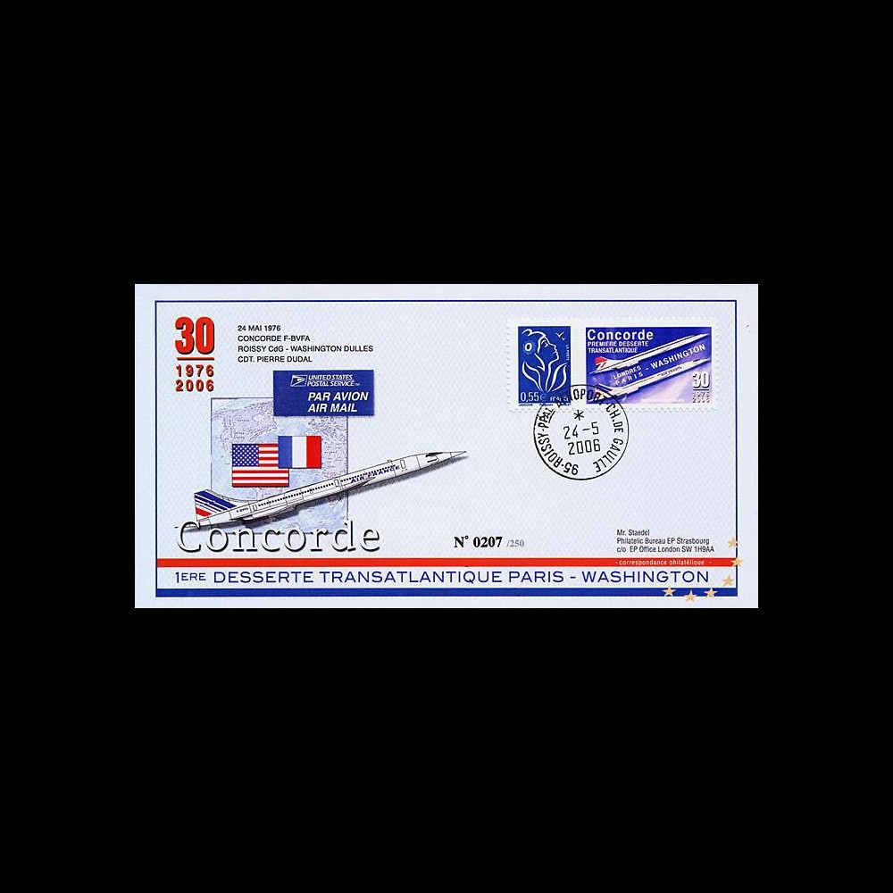 N°CO-RET30V: Commemorative FDC"Concorde F-BVFA - 30th anniversary of the 1st service transatlantic Paris-Washington"