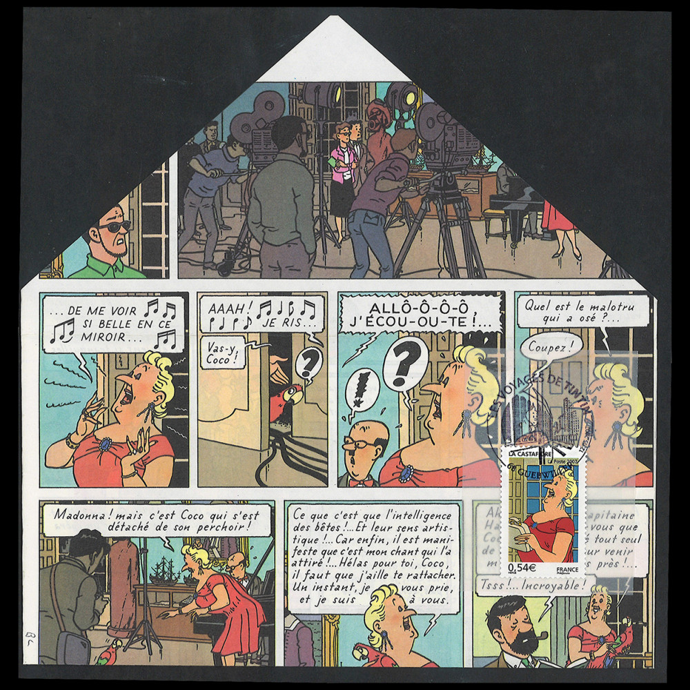 N°TIN07FR-CAST34: Collector's envelope handcrafted from page 34 of an authentic album of the Adventures of Tintin "The Castafiore Emerald"