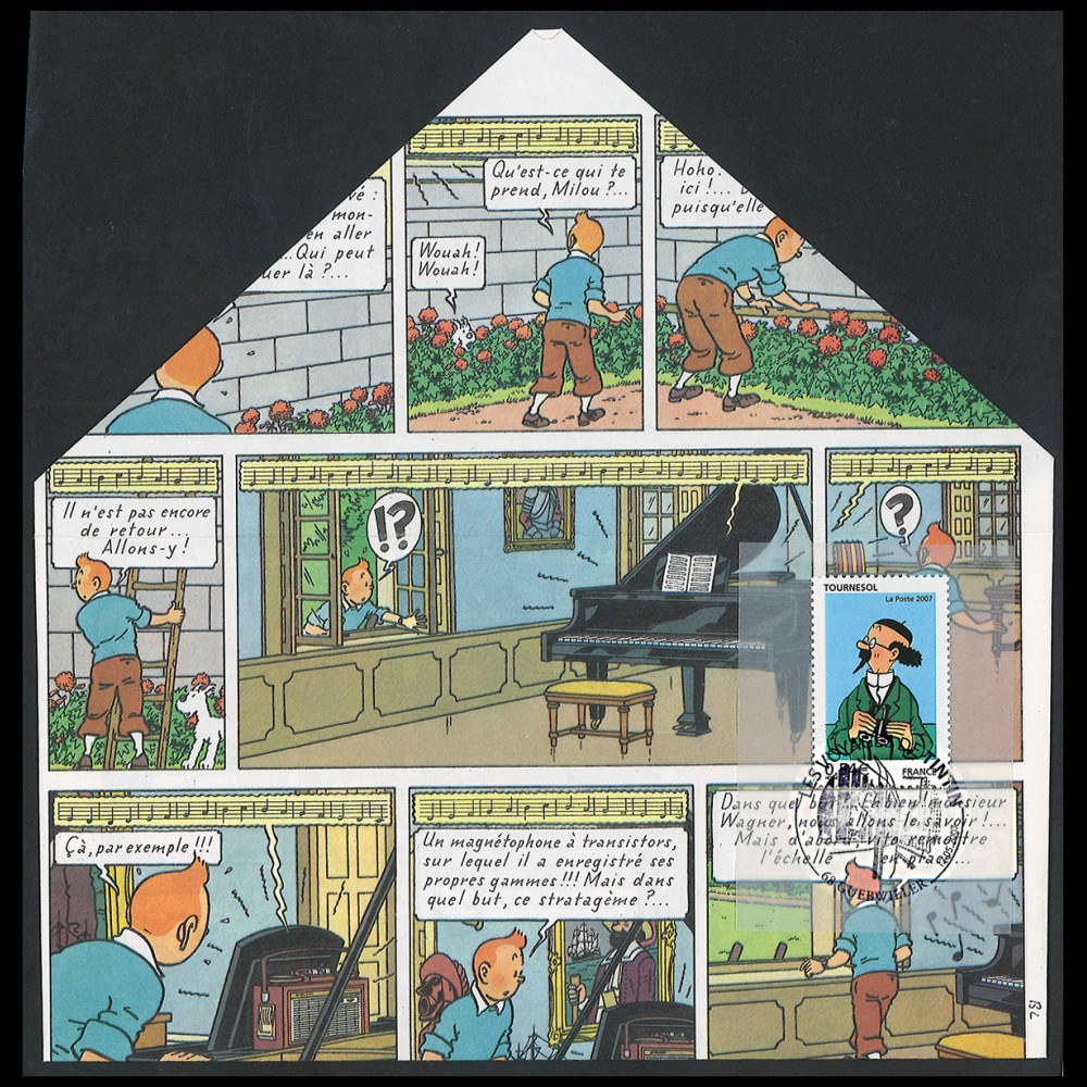 For "Tintinophiles" and passionate collectors, we wanted to create an original "First Day" by handcrafting envelopes from pages cut from authentic albums "The Adventure of Tintin".