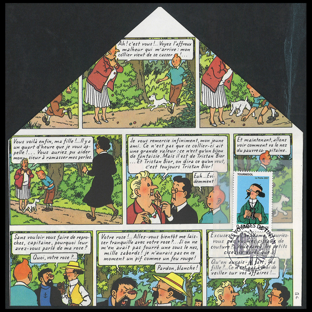 For "Tintinophiles" and passionate collectors, we wanted to create an original "First Day" by handcrafting envelopes from pages cut from authentic albums "The Adventure of Tintin".