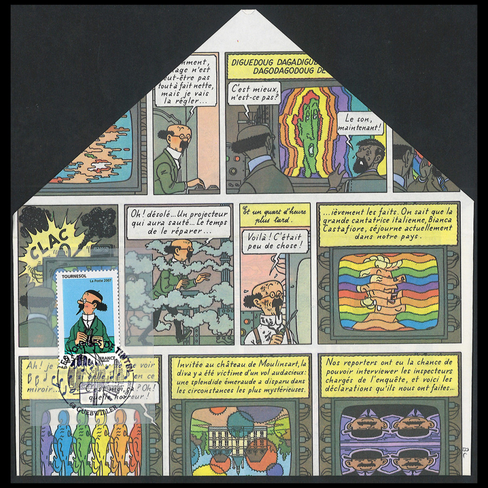 TIN07FR-TOU49: Collector's FDC “Tintin Travels, Calculus, TV, p.25“ France 2007