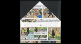 The Belgian Post wanted the centenary of Hergé's birth not to go unnoticed. As a tribute to this great artist, it has decided to issue a superb sheet of 25 special stamps, illustrated with 24 covers of the Tintin albums, each presented in a different language with, in the centre, a portrait of the author. "Presale" May 19, 2007, "First Day of Issue" May 22, 2007.