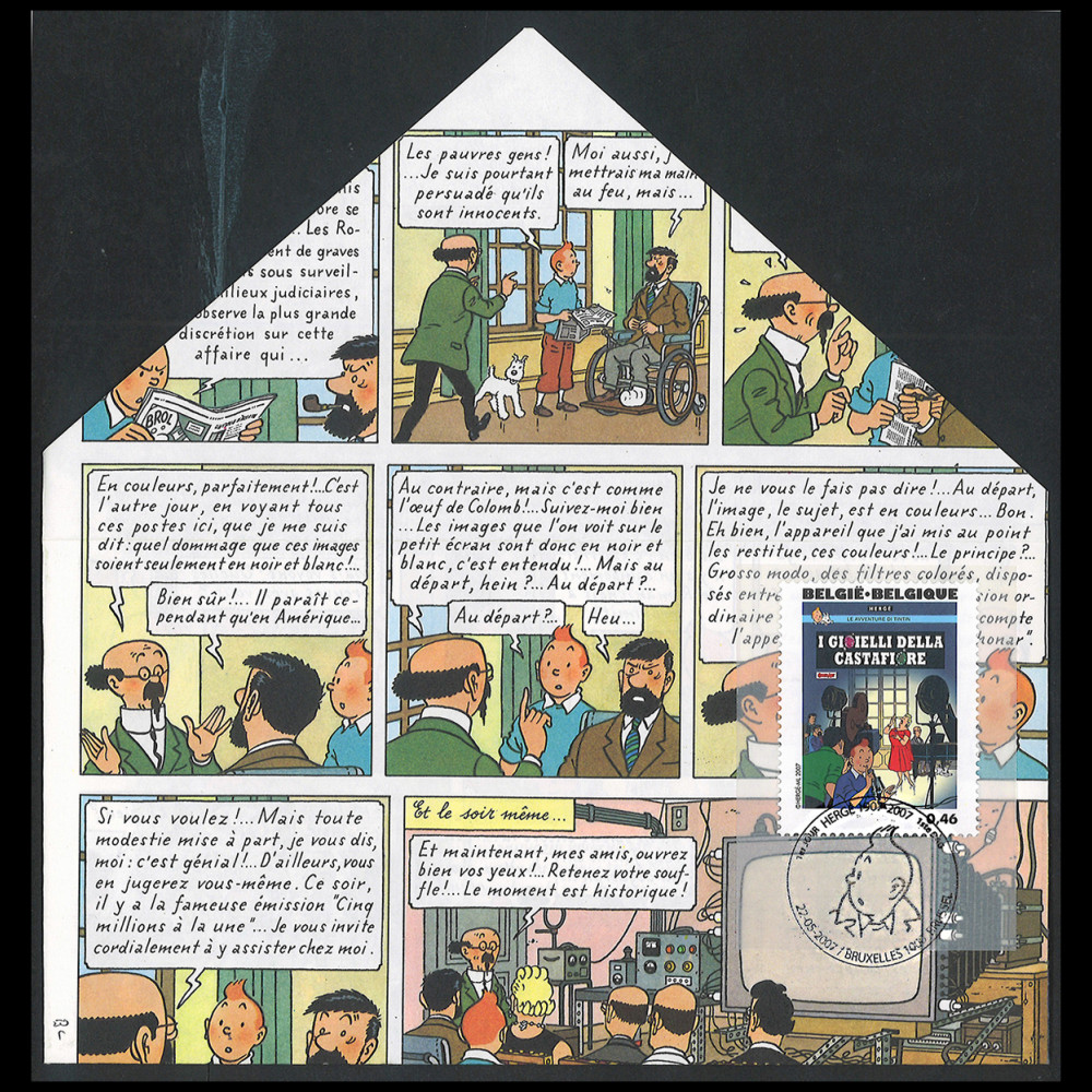 For "Tintinophiles" and passionate collectors, we wanted to create an original "First Day" by handcrafting envelopes from pages cut from authentic albums "The Adventure of Tintin".